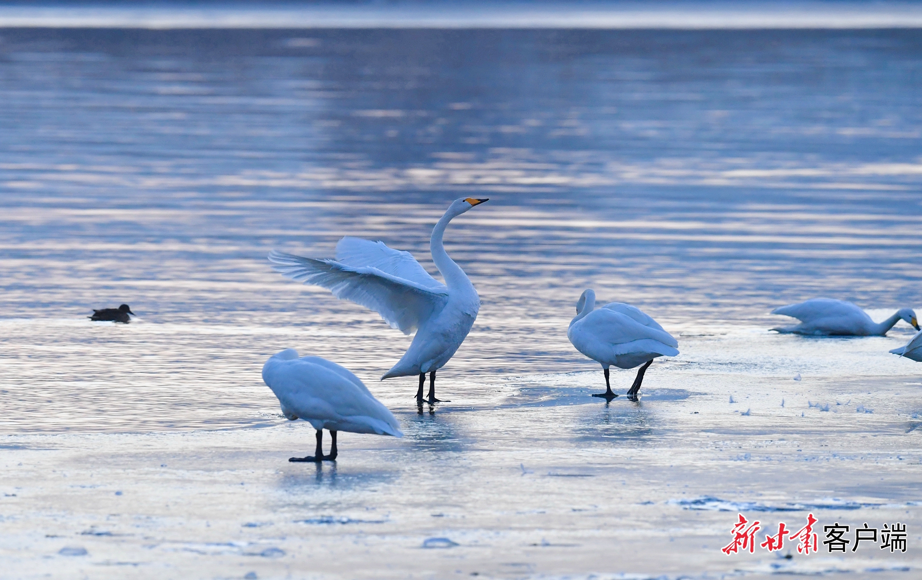 大天鵝的造訪給冬日的蘭州增添了幾分浪漫