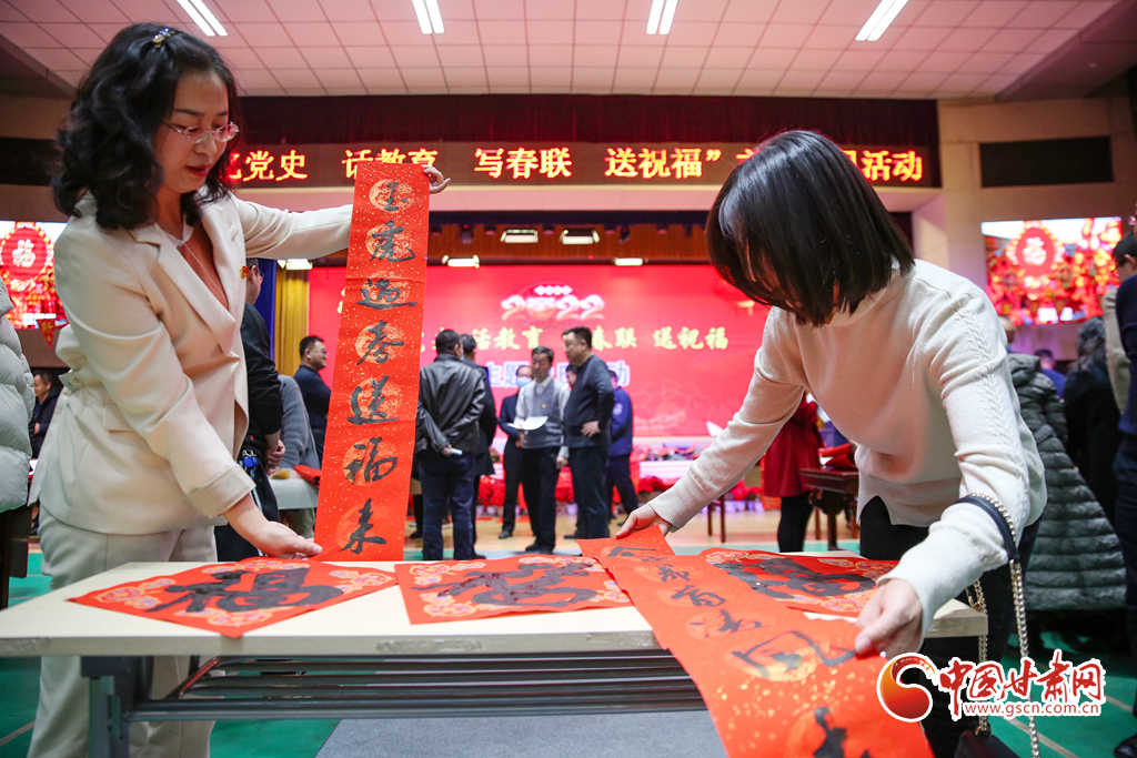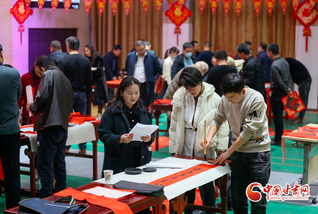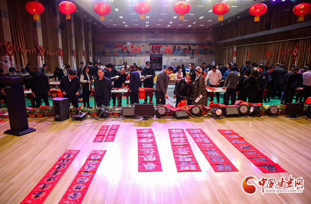 1月25日晚,甘肅省酒泉市教育局機(jī)關(guān)黨支部舉辦了寫(xiě)春聯(lián),迎新春活動(dòng)?;顒?dòng)現(xiàn)場(chǎng),來(lái)自市區(qū)兩級(jí)書(shū)協(xié)、美協(xié)及教育系統(tǒng)的書(shū)法家們筆走龍蛇,潑墨揮毫,行、隸、草等多種書(shū)體各顯神韻,一幅幅充滿(mǎn)喜慶、祝福的對(duì)聯(lián)在書(shū)法家的手中隨筆而出,為迎接新春佳節(jié),弘揚(yáng)傳統(tǒng)文化,營(yíng)造歡樂(lè)、祥和的節(jié)日氛圍。