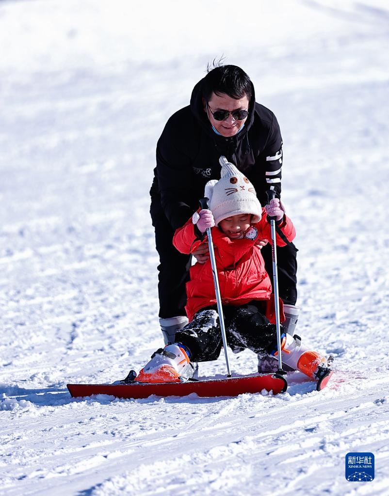 2月19日,市民在寧夏銀川市閱海滑雪場玩耍。