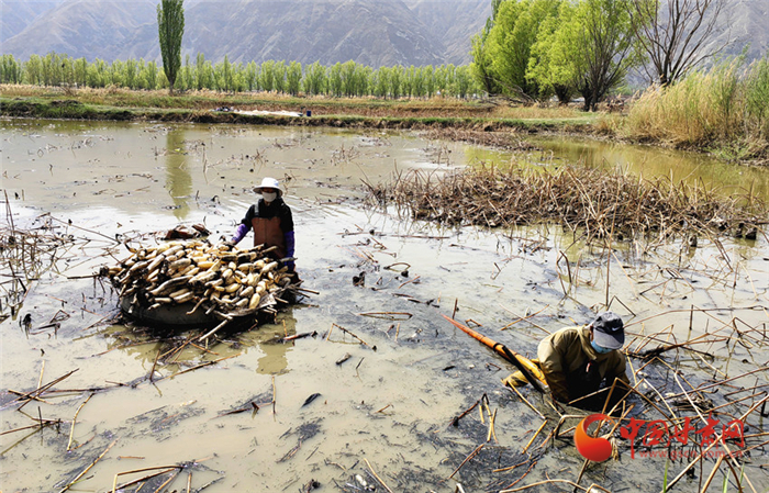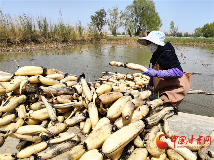 近日,記者來到榆中縣青城鎮(zhèn)東灘村,在青城五良養(yǎng)殖場,記者看到不遠(yuǎn)處的池塘里,村民們正在采收蓮藕,魚塘中的鯉魚拍打著水花,成群結(jié)隊(duì)搶食……一幅熱鬧豐收的圖景躍然眼前。