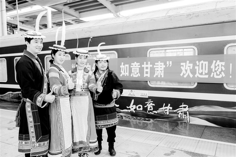 為落實甘肅省“旅游強省”戰(zhàn)略,自2018年開始,依托甘肅境內(nèi)豐富的旅游資源和鐵路客運資源優(yōu)勢,以“一列車、一張圖、一種游”為思路,“環(huán)西部火車游”客運旅游產(chǎn)品上線,讓“列車繞著景點過”變成“火車朝著景點開”,在實現(xiàn)“引客入甘”等方面發(fā)揮了積極作用。2020年,在甘肅省文化和旅游廳的大力支持下,立足疫情常態(tài)化防控背景,“環(huán)西部火車游”實現(xiàn)跨區(qū)域王牌旅游產(chǎn)品“三級跳”:“五一”期間開通隴南到敦煌的旅游線路,打通“如意甘肅”全境全線;8月份,打通四川、重慶、陜西、寧夏、青海等西部6省區(qū)市跨省游小環(huán)線;九月底,隨著由甘肅文旅牽頭的“環(huán)西部火車游”跨區(qū)域旅游產(chǎn)品從廣西一路開到新疆,一條綠色長龍,儼然一艘“陸上郵輪”,串起西部旅游黃金線,打造出一條“坐著火車游西部”的文旅經(jīng)濟消費帶。