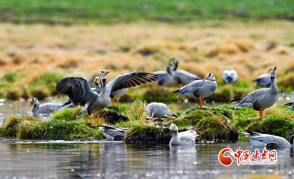 近日,隨著天氣轉(zhuǎn)暖,祁連山國家公園甘肅省管理局酒泉分局鹽池灣濕地境內(nèi)迎來了最佳觀鳥期,斑頭雁、赤麻鴨、黑頸鶴等珍稀候鳥在這里孵化繁殖,讓人驚嘆大自然的美妙神奇。