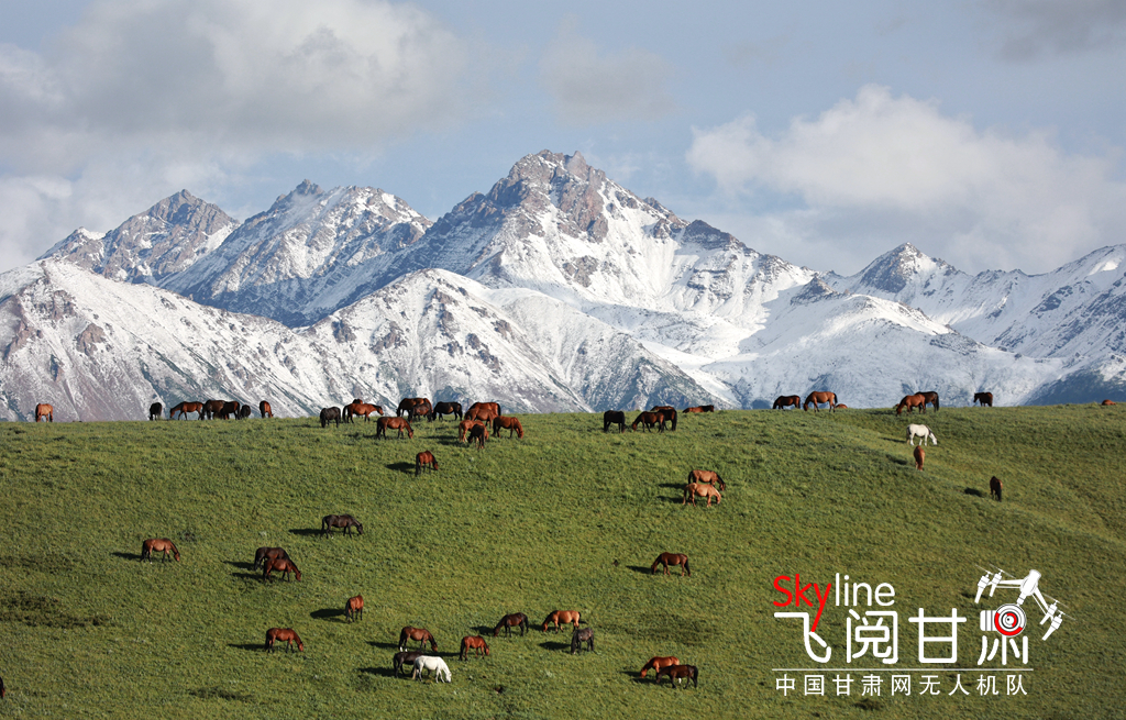 7月21日,甘肅山丹馬場迎來降雨天氣,雨后草原氣溫回升,雪山、草場和馬群構成一幅幅美麗的生態(tài)畫卷。