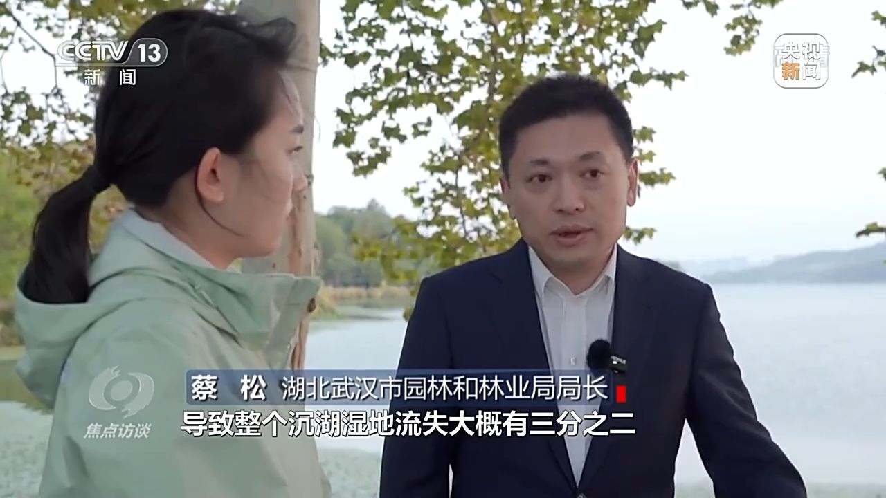 湖北武漢市園林和林業(yè)局局長 蔡松:圍湖造田、養(yǎng)魚,導(dǎo)致整個沉湖濕地流失大概有三分之二,比較嚴(yán)重。從2013年開始,武漢市加大對沉湖濕地的整治力度,通過生態(tài)補償?shù)姆绞?,整個退漁還濕達(dá)到了7.8萬畝。