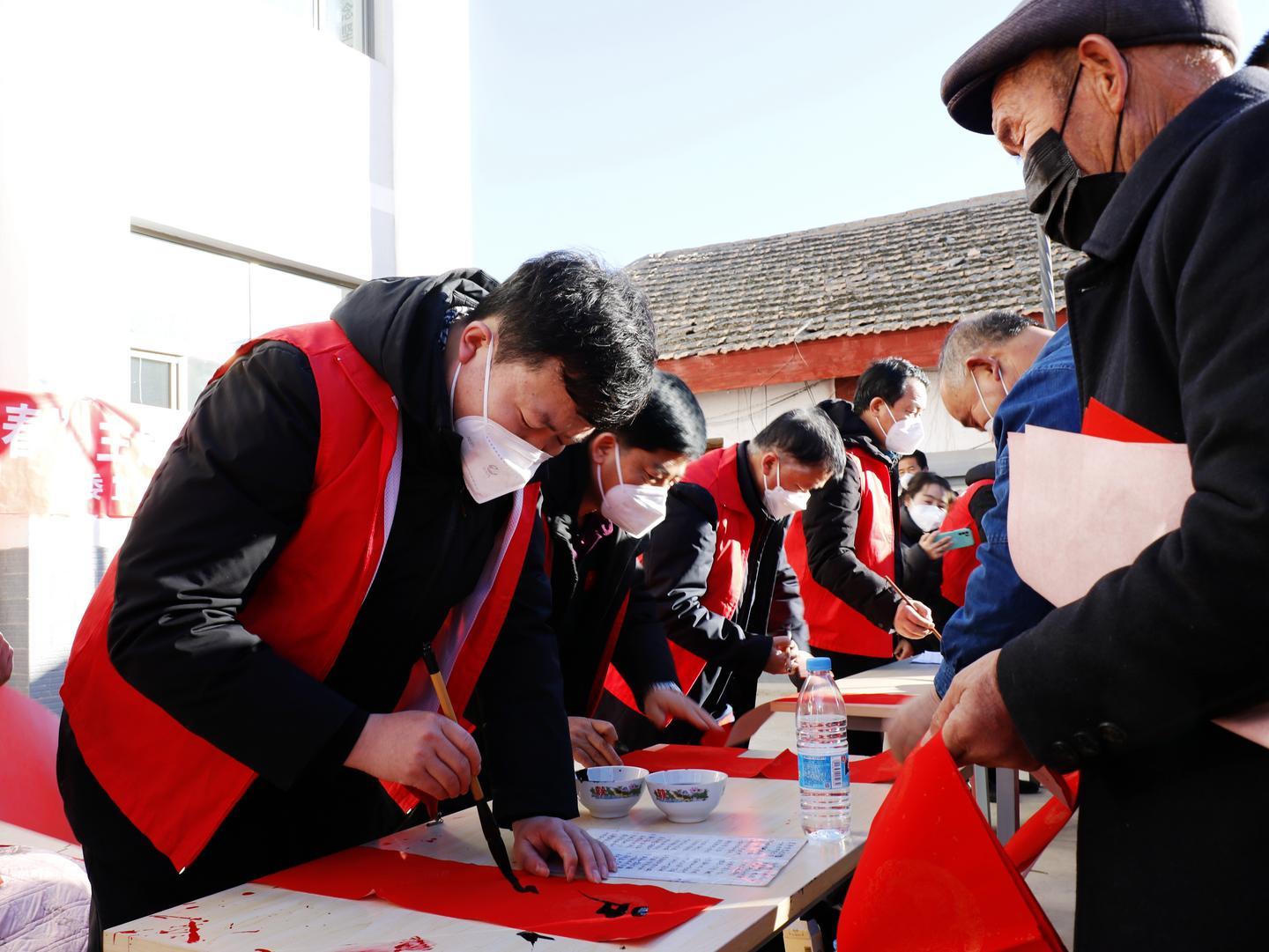 活動現(xiàn)場,來自涼州區(qū)書法家協(xié)會、涼州區(qū)書畫院的文化志愿者們揮毫潑墨,筆尖游走于墨色與紅紙之間,以筆寄意、以字傳情,片刻間,一張張象征平安吉祥的"福"字、一副副謳歌黨的二十大、內(nèi)容文明健康的紅色喜慶春聯(lián),寄托著滿滿的新春祝福撲面而來?,F(xiàn)場群眾拿到自己心儀的春聯(lián)和"福"字,喜悅之情溢于言表?;顒又?,涼州區(qū)婦女聯(lián)合會、共青團(tuán)涼州區(qū)委等單位還開展了愛心捐贈、公益診療、義務(wù)理發(fā)等志愿服務(wù)活動,為困難群體送上溫暖和健康。