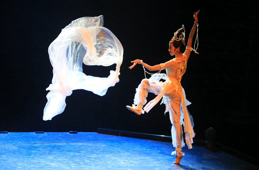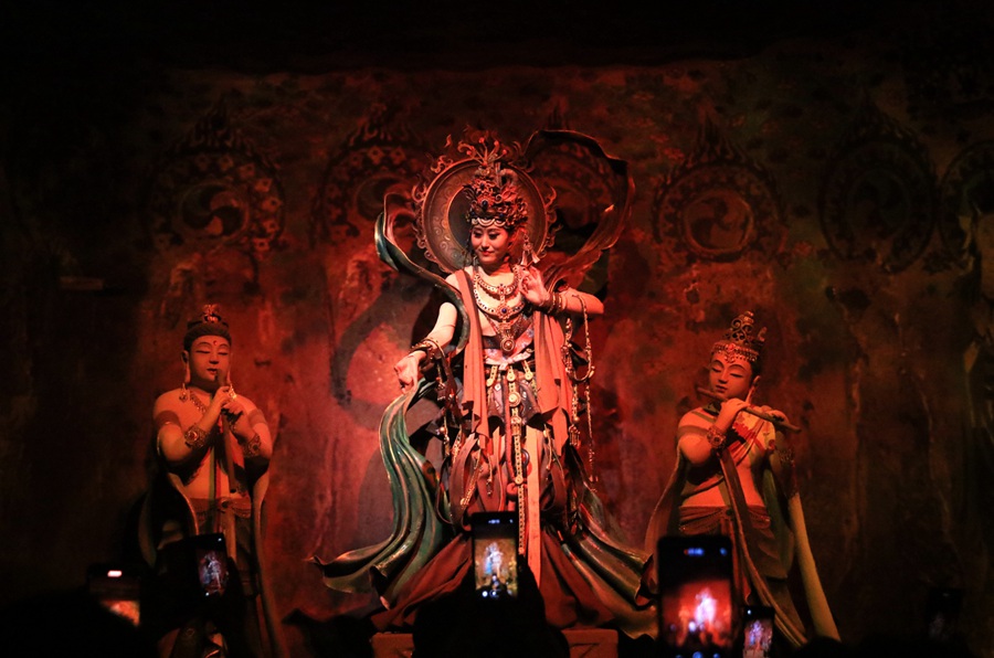大型洞窟式沉浸體驗劇《樂動敦煌》演出現(xiàn)場。張曉亮攝