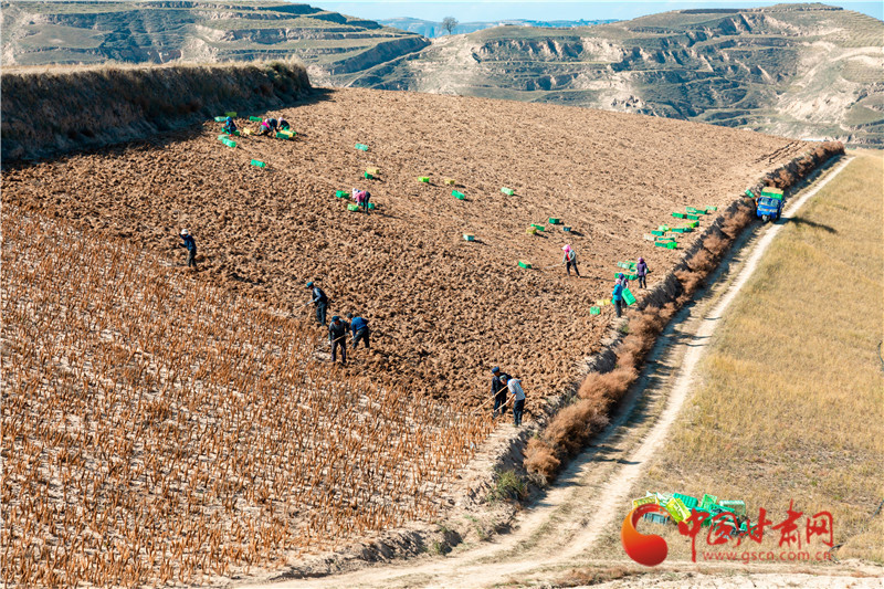 同樣在榆中縣園子岔鄉(xiāng),連片的田間地頭里,農(nóng)民們干勁十足,臉上洋溢著豐收的喜悅。隨著鋤頭的翻挖,一顆顆個大飽滿的百合破土而出,構(gòu)成了一幅繁忙的秋收畫卷。