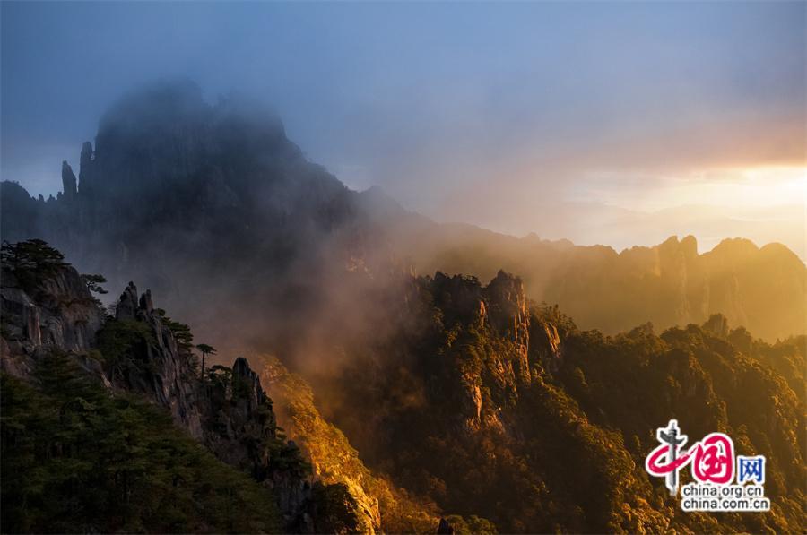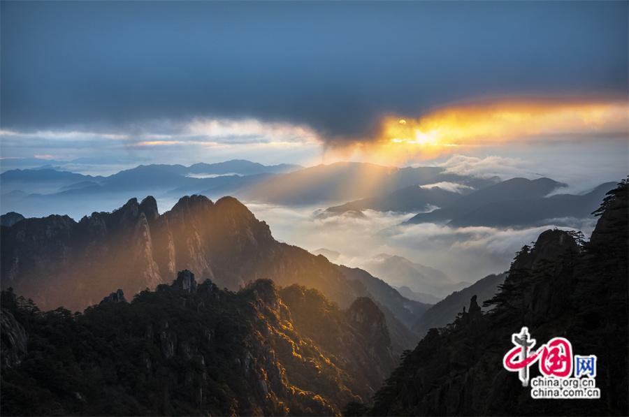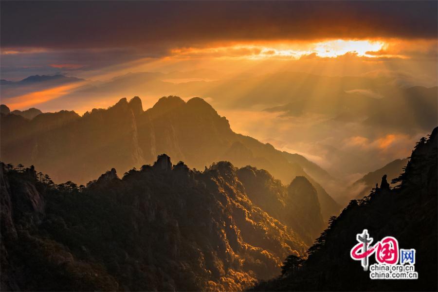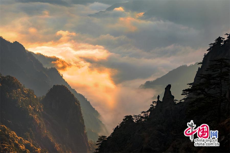 只有一個黃山:日出霞光盡染 云霧輕舒漫卷