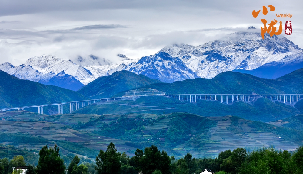 層巒疊嶂的雪峰和蔥郁的山坡、綠樹形成鮮明對比,成為一道靚麗的風景線。駐足遠觀,滿眼都是大自然的溫柔與浪漫。