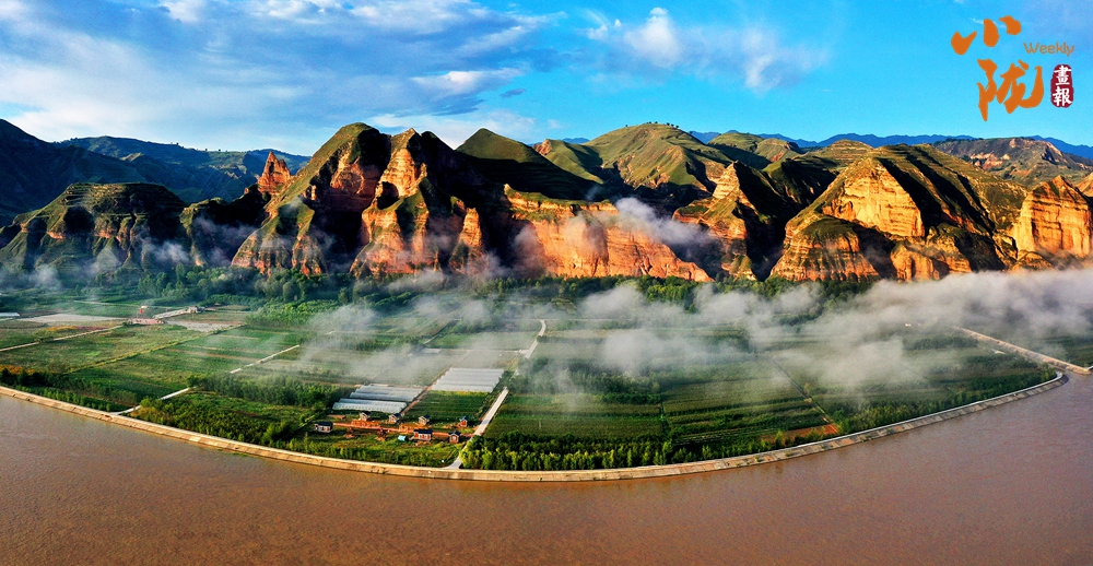 遠眺大河家鎮(zhèn),滾滾的黃河水沖出積石雄關(guān)后,放緩了腳步,河水激起朵朵浪花,騰起條條微波,兩岸沃野千里,一條壯麗的風景帶蜿蜒向前。