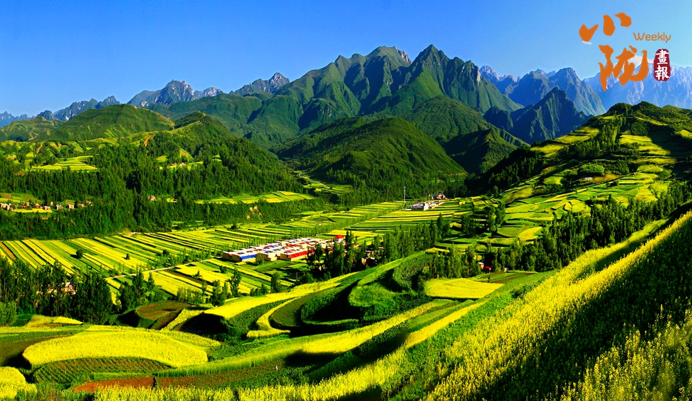青山環(huán)繞,大南岔河潺潺流過,藍天白云下,村莊、山巒、樹木相映成趣……此時的和政大地如童話般浪漫唯美,像一幅美麗的田園詩畫,一路芳華,令人陶醉。