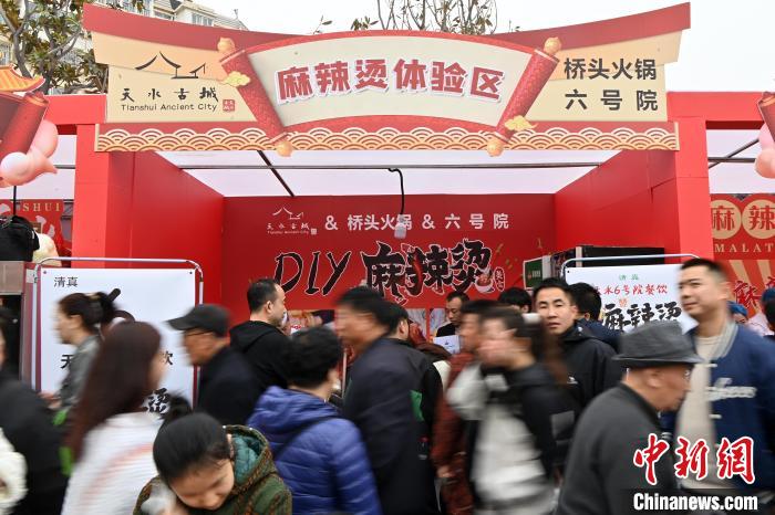 3月16日,天水麻辣燙“吃貨節(jié)”設(shè)置展銷區(qū)、體驗(yàn)區(qū),吸引游客沉浸式感受麻辣燙“熱情”。九美旦增  攝