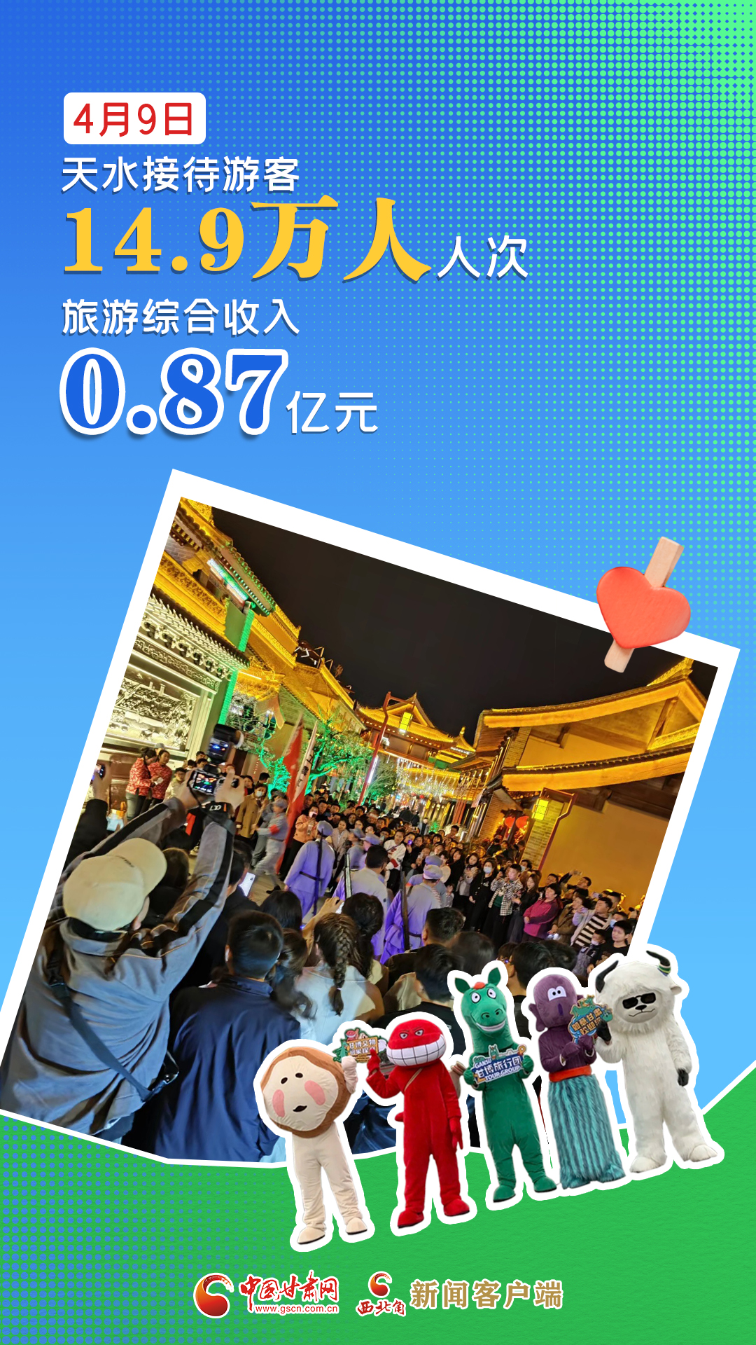 海報|4月9日,天水市接待游客14.9萬人次,實現(xiàn)旅游綜合收入0.87億元