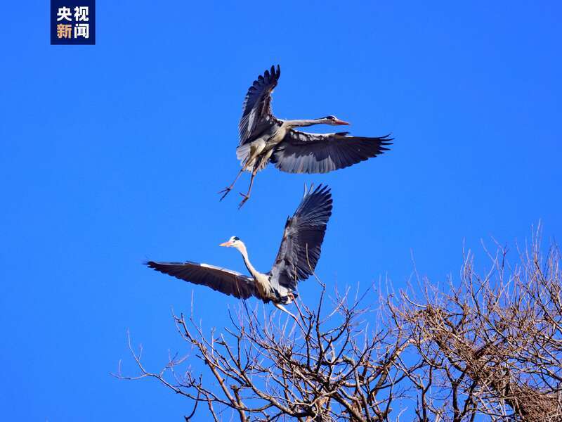 隨著氣溫回升,位于子午嶺腹地的甘肅省慶陽市合水縣太白鎮(zhèn),有成群結(jié)隊的蒼鷺如約從南方飛來。它們或落在樹冠,偎依在一起,或維修著往年搭建好的巢穴,開啟新一輪的繁衍生息。子午嶺腹地是天然的生態(tài)林區(qū),近年來,當?shù)鼐C合實施固溝保塬、退耕還林、植樹造林等工程,森林覆蓋率達到69.82%,引來眾多珍稀鳥類繁衍生息。(總臺記者 焦健)