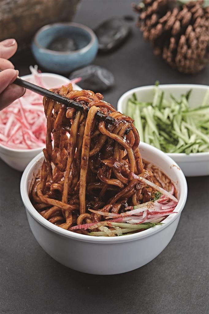 和老北京炸醬面相比,蘭州炸醬面雖然少了時令蔬菜,但是肉醬分量很足,這絕對代表了蘭州人的實在和“碳水之都”的誠意。一口裹上醬汁的面條可以直接“擊碎”饑餓。蘭州人做炸醬用現(xiàn)成的面醬加上肉末、蔥等作為主料,再配以農家常見的蔬菜丁,把肉末上鍋烹炒后放入蔥末,再添加調料炒到半熟加入適當的水用快火燉,炸醬中加淀粉勾芡使炸醬變得柔滑濃香,再配上筋道的手工拉面澆上炸醬,加上辣椒油,淋一點醋那就濃香四溢了。