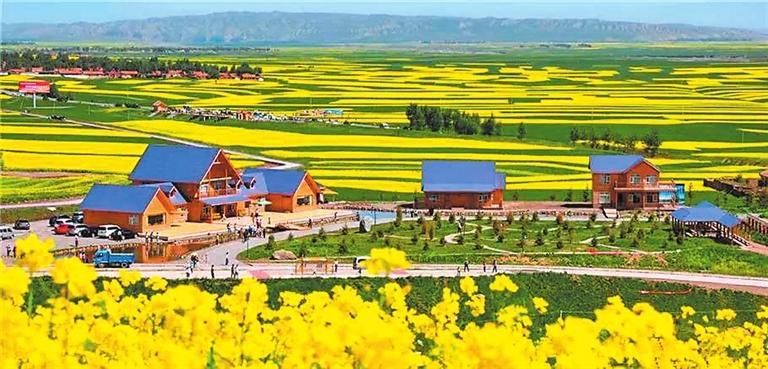 眺望遠(yuǎn)處,一座座大山傲然聳立在半空中,和云朵擦肩而過,山上綠樹成蔭,空氣十分清新。最美的還是田野,爬上山頂往下看,除了空中飛行的鳥兒,一眼望不到邊的是綠油油的田野。227國道將村莊分割為東、西兩塊大小不等的地域,金黃的千畝油菜花海,夾雜著大麥、馬鈴薯的碧綠條塊,環(huán)繞在村莊四周。人工栽植的云杉松柏、紫葉矮櫻等苗木高低起伏地相擁在家家戶戶的房前屋后,坐落在油菜花海和綠樹環(huán)繞中的村莊與小康農(nóng)舍,恰似航船一樣在金黃的花海中漂浮升沉著,煞是美麗。正是這宜業(yè)宜居、可憩可游、美麗愜意的鄉(xiāng)村生活環(huán)境,讓炒面莊贏得“美麗鄉(xiāng)村”示范村和“環(huán)境整潔村”的美譽(yù)。