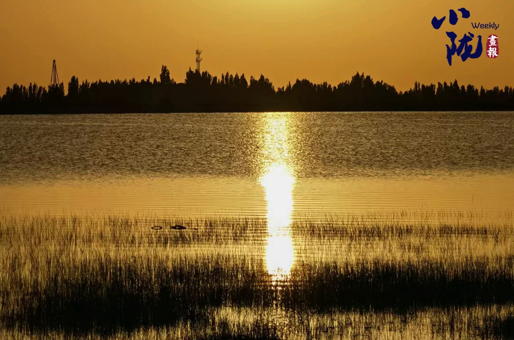 落日余暉下,濕地的水面上泛著暖融融的金光,顯得那么靜謐。此時(shí)的濕地,演繹著一個(gè)和白天完全不同的自己,似一幅色彩斑斕、意蘊(yùn)萬(wàn)千的畫(huà)卷。