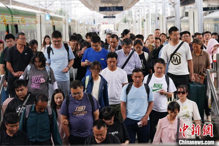 8月31日,云南昆明,列車抵達昆明站,旅客走出站臺。當日,為期62天的中國鐵路暑運結(jié)束。中新社記者 劉冉陽 攝