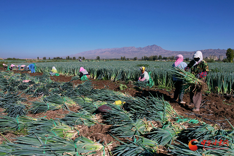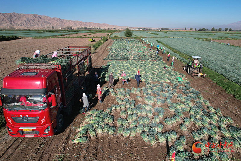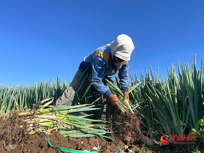 金秋時(shí)節(jié),山丹縣清泉鎮(zhèn)南關(guān)村的260畝大蔥迎來了豐收。