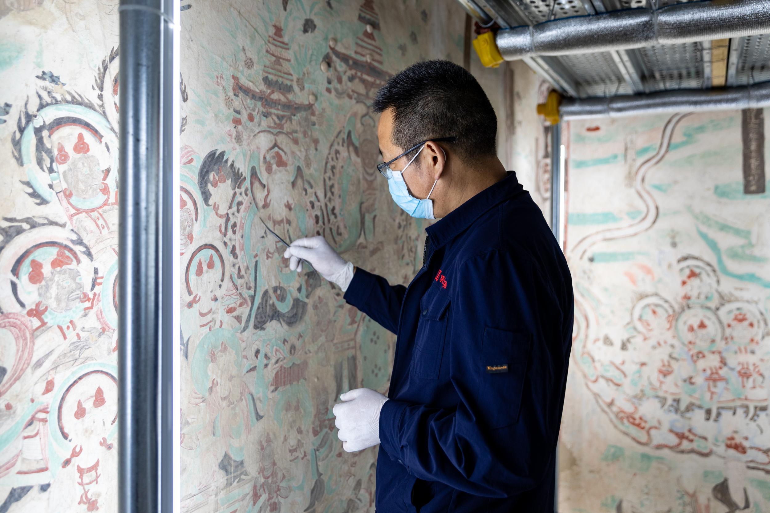 作為敦煌研究院文化保護技術(shù)服務中心壁畫修復師,付有旭從1988年入職敦煌研究院工作至今,他主要從事文物保護工作,在從事修復工作的36年的時間里,他始終如一,認真對待敦煌莫高窟每一平方米的壁畫。