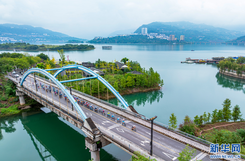 2024環(huán)昭通國際公路自行車賽(綏江—水富賽段)比賽現(xiàn)場(11月8日攝)。新華網(wǎng)發(fā)(曾三東 攝)