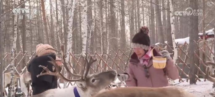 在根河市一景區(qū)內(nèi),來自廣東的50多名游客在此賞雪景、打雪仗。吸引外地游客的不僅是根河市的極寒氣候和冰雪資源,還有這里的馴鹿。馴鹿投喂、馴鹿拉雪橇等活動,讓游客與馴鹿近距離接觸。