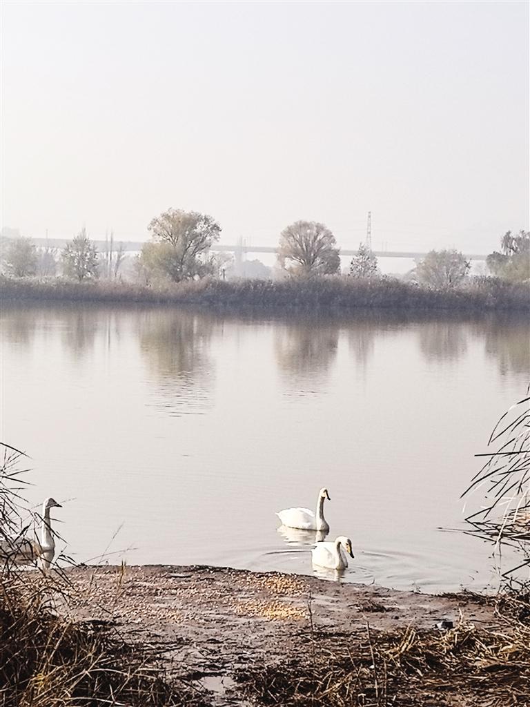 志愿者達(dá)朝陽(yáng)對(duì)記者說(shuō):“如今,我們這里成了賞鳥(niǎo)打卡地,每天都有5至6人的志愿隊(duì)伍來(lái)這里清理垃圾,勸阻個(gè)別游人的不文明行為。每次看到這些天鵝和其他候鳥(niǎo)在我們這里歡快地覓食、嬉戲,我們就感到特別滿(mǎn)足和自豪。”