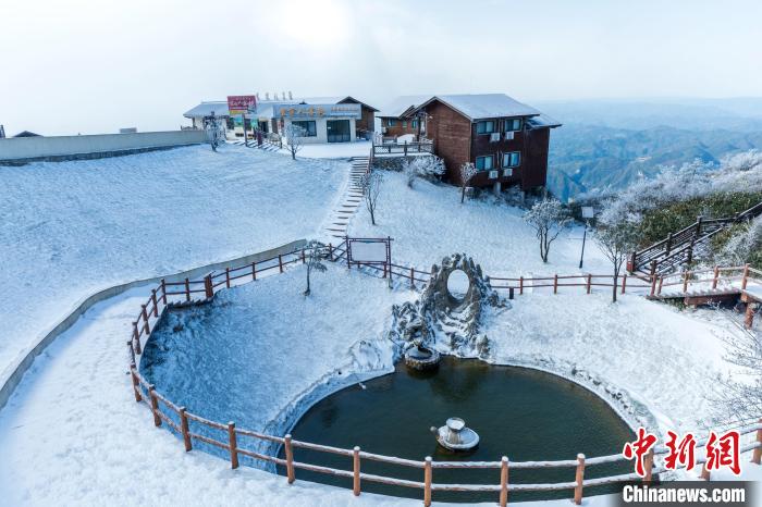 11月25日,受強(qiáng)冷空氣影響,四川省萬源市遭遇強(qiáng)降溫天氣。八臺山景區(qū)迎來了一場降雪,雪花紛紛灑灑,八臺山被裝點(diǎn)成了銀裝素裹的冰雪世界。鄭興平 攝