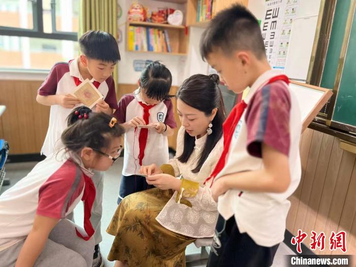6月,國家級非物質(zhì)文化遺產(chǎn)代表性項目民間繡活(夏布繡)市級代表性傳承人吳婉菁正在給幾位學(xué)生展示夏布繡。(受訪者供圖)