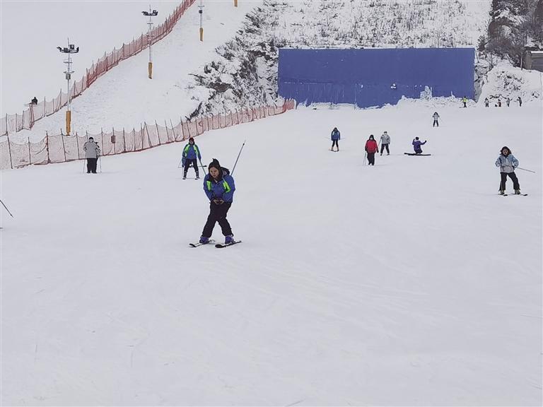 接著來(lái)到興隆山滑雪場(chǎng),這里是冰雪運(yùn)動(dòng)愛(ài)好者的歡樂(lè)天地?;﹫?chǎng)經(jīng)理賈青云介紹,該滑雪場(chǎng)占地超400畝,擁有5條初、中級(jí)滑雪道,是中初級(jí)滑雪愛(ài)好者的樂(lè)園,今年全新打造的兩萬(wàn)平方米豪華“戲雪樂(lè)園”更是引人注目。“開(kāi)業(yè)不到一個(gè)月,已接待游客一萬(wàn)多人,周末日均客流量超一千,平日也有四、五百人,滑雪場(chǎng)可同時(shí)容納2000人滑雪。”賈青云表示,滑雪場(chǎng)近期推出了優(yōu)惠活動(dòng),原價(jià)128元的門(mén)票現(xiàn)只需88元,包含滑雪服和存衣柜的使用。值得一提的是,經(jīng)過(guò)改造升級(jí)后的滑雪場(chǎng)加入了波西米亞風(fēng)格,設(shè)有拍照打卡地和咖啡廳,成為年輕消費(fèi)者熱衷的網(wǎng)紅打卡點(diǎn),游客在此不僅能滑雪,還能享受火鍋、烤肉等美食,體驗(yàn)別樣的冬日休閑時(shí)光。