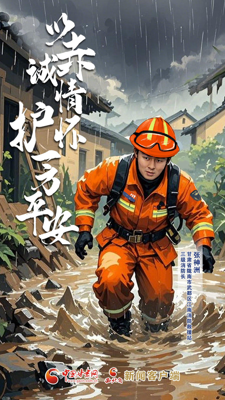 手繪海報(bào)|甘肅省隴南市武都區(qū)江南消防救援站三級(jí)消防長張神洲:以赤誠情懷 護(hù)一方平安