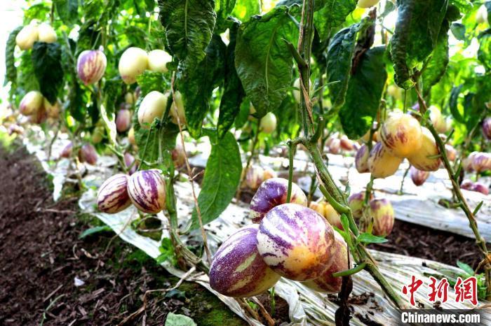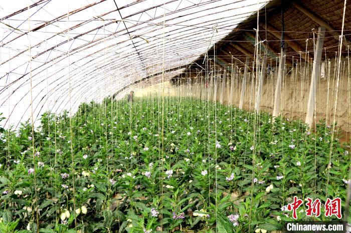 圖為民勤縣溫室人參果種植基地,一株株人參果生長茂盛,葉片翠綠欲滴。(資料圖)馬愛彬 攝