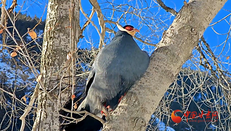 祁連秘境上演藍馬雞家族雪地“聚會”