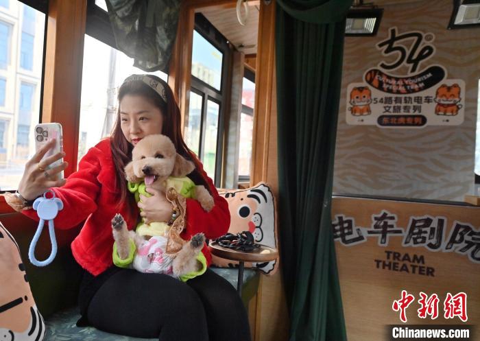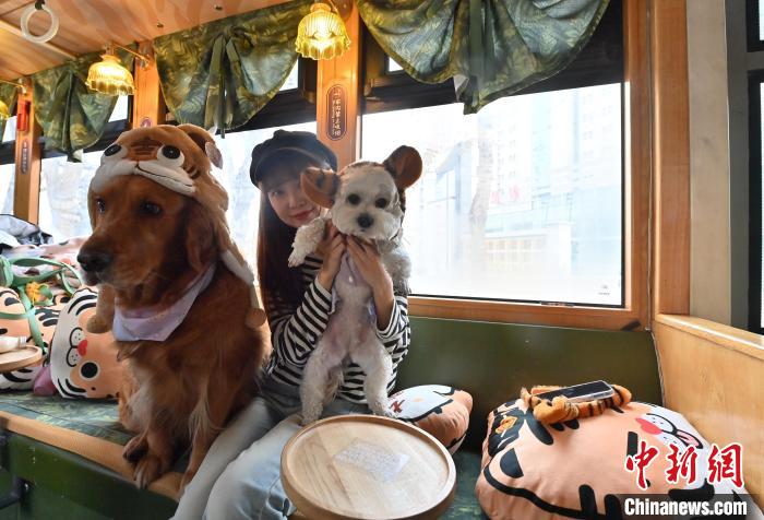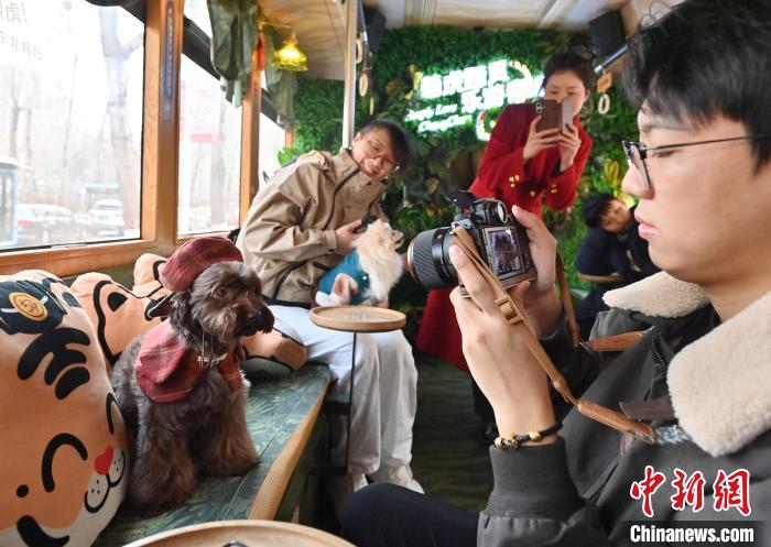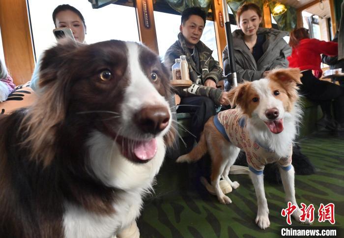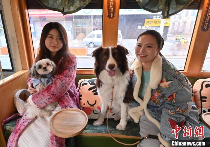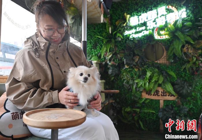 3月16日,吉林長(zhǎng)春,寵物和主人在車廂拍照留念。中新社記者 張瑤 攝
