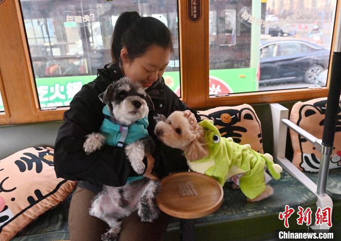 3月16日,吉林長(zhǎng)春,寵物和主人在車廂內(nèi)看風(fēng)景。近日,長(zhǎng)春54路文旅東北虎專列專為寵物主人們推出攜帶寵物乘車的專屬服務(wù),寵物主人可在特定時(shí)間帶領(lǐng)寵物乘車。車廂內(nèi),萌寵們或坐或臥,與主人親密互動(dòng),仿佛在進(jìn)行一場(chǎng)別開生面的派對(duì)。中新社記者 張瑤 攝