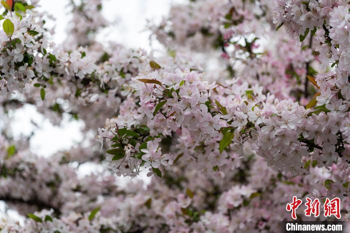 圖為3月16日,棠湖公園正大門處,盛開的垂絲海棠。韓金雨 攝