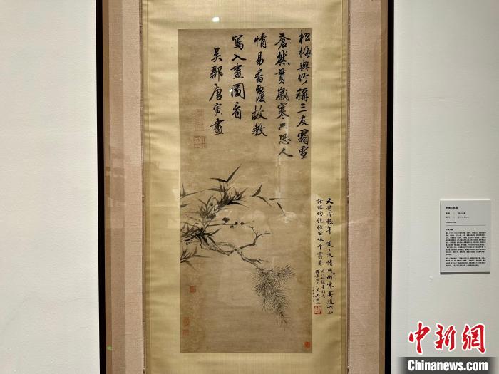 明代唐寅《歲寒三友圖》?!≈行戮W(wǎng)記者 王笈 攝