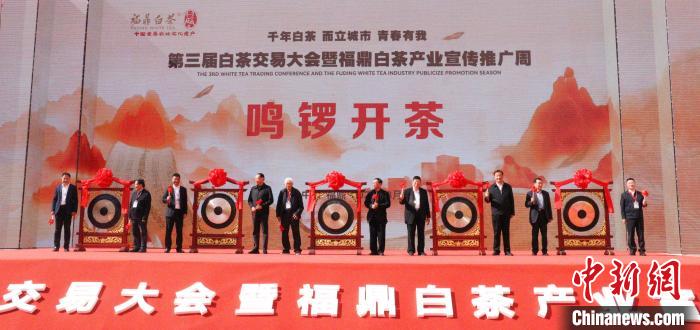 鳴鑼“開茶開市”,開啟第三屆白茶交易大會暨福鼎白茶產(chǎn)業(yè)宣傳推廣周序幕?!×珠派?nbsp;攝