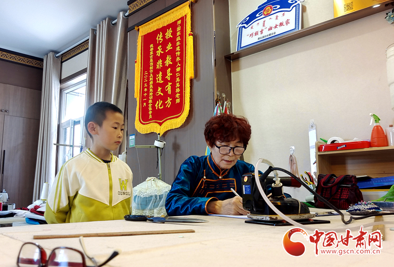 “孩子愛(ài)出汗,帽子要輕薄透氣,衣服的花紋要傳統(tǒng)的‘夏格拉繡’”5月18日,在肅北縣蒙古族服飾國(guó)家級(jí)非遺傳承人娜仁其其格的工作室內(nèi),牧民劉麗青正在為兒子“定制”傳統(tǒng)肅北蒙古族服飾。這件融入現(xiàn)代審美的民族服裝,將成為孩子節(jié)日活動(dòng)和校園生活中的“文化名片”。