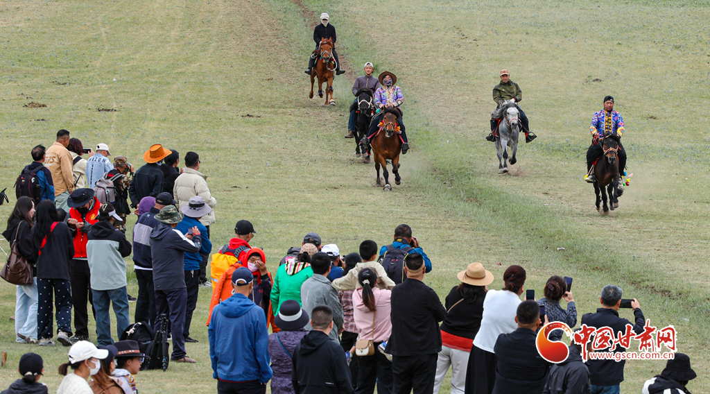 當(dāng)日,肅南裕固族自治縣“相約康樂草原 體驗民族風(fēng)情”傳統(tǒng)文化展演活動拉開帷幕,來自肅南縣3個鄉(xiāng)鎮(zhèn)22個村的160多名騎手,自發(fā)匯聚于此,展開大馬賽、小馬賽、圓口賽、對牙賽等精彩賽事,將草原的速度與激情演繹得淋漓盡致,吸引了上海、廣東、安徽、福建等地的萬名游客觀賞賽馬和領(lǐng)略雪山、森林、草原為一體的祁連山美麗景色。