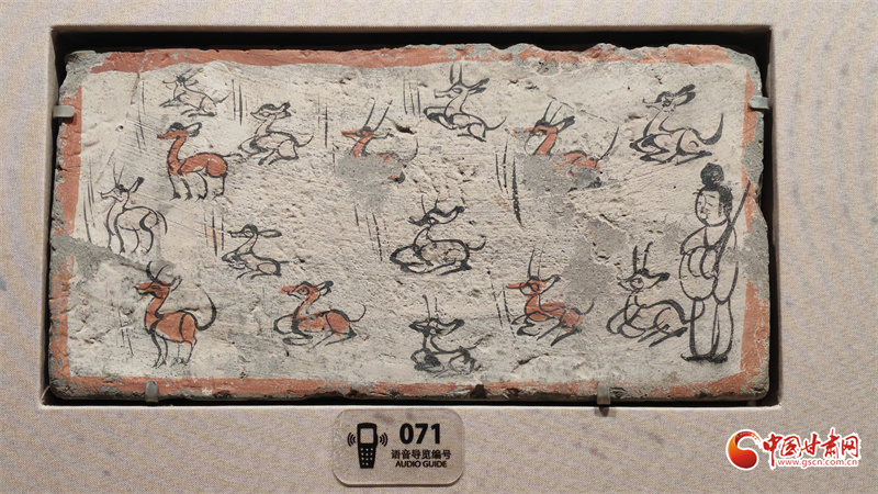 在博物館的“古冢丹青——高臺魏晉十六國時期墓葬壁畫藝術陳列”展廳里,記者看到,《二牛耕地畫像磚》生動再現(xiàn)了當時的農(nóng)耕技術:兩頭耕牛架著直轅犁,后隨的男子一手扶犁一手揚鞭,展現(xiàn)了典型的“二牛抬杠”耕作方式。《牧鹿圖壁畫磚》則描繪了古人放牧鹿群的獨特場景,為研究當時的畜牧業(yè)發(fā)展提供了珍貴資料。