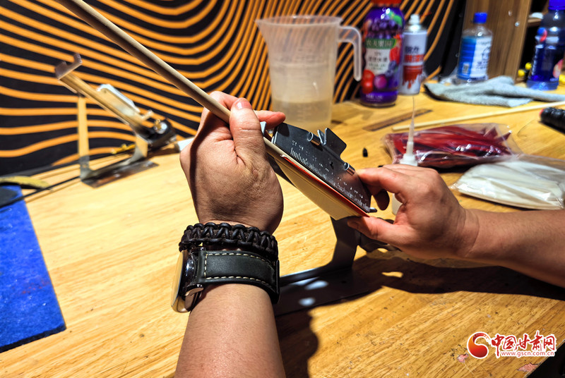 2011年,還是大學生的謝建戈在百度貼吧結(jié)識了山東臨沂“高氏傳統(tǒng)弓箭”非遺傳承人高超。囊中羞澀的他提出“先貨后款”,高超被這份赤誠打動,寄來第一套玻片弓料。一個月后,生活費一到賬,他第一時間把錢打了過去——網(wǎng)絡(luò)那端的高超從此記住了這個甘肅小伙。2012年,他做出人生第一把玻片弓。
