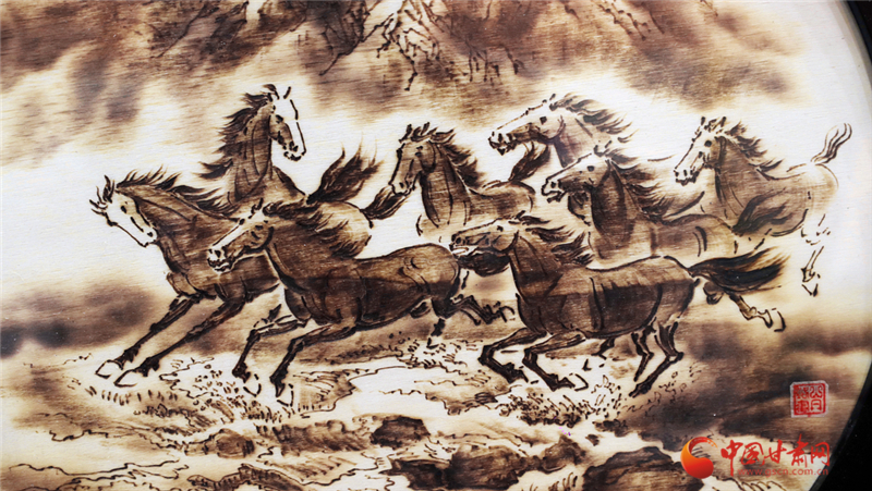 “要讓傳統(tǒng)工藝跟上時代,就得融入現(xiàn)代審美。”張志光始終思考著非遺的未來。他嘗試用年輕人喜歡的短視頻展示烙畫創(chuàng)作過程,把山丹馬、丹霞地貌等地域元素搬進作品,讓更多年輕人了解這門古老技藝。從西漢的熱鐵燙木,到如今的彩烙新篇,張志光用半生匠心證明:非遺不是博物館里的標本,而是能在創(chuàng)新中煥發(fā)新生的文化瑰寶,而他的堅守與創(chuàng)新,正為山丹烙畫的傳承寫下最生動的注腳。
