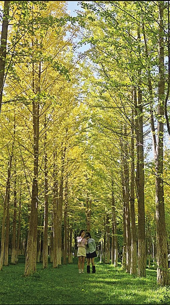 初秋時(shí)分,市民在銀杏樹(shù)下拍照打卡