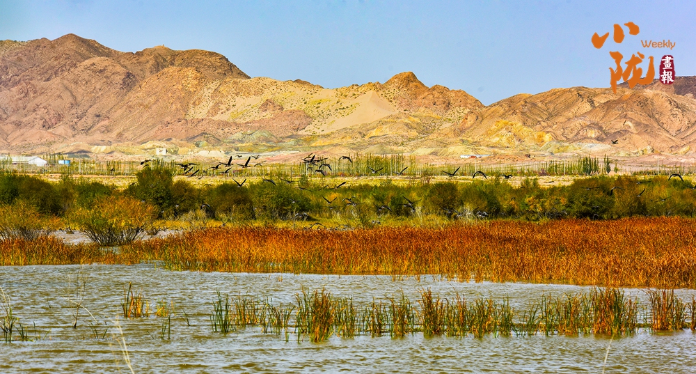 水草搖曳、波光粼粼、候鳥翻飛,湖泊與沙丘共存,藍天與碧水相接,集大漠戈壁、蘆葦、候鳥、湖泊于一體,構成了一道獨特的自然景觀。