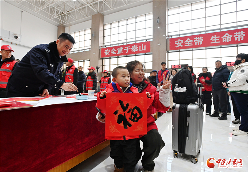 活動(dòng)現(xiàn)場(chǎng)設(shè)置了“平安送福”“登車叮囑”等宣傳服務(wù)項(xiàng)目,現(xiàn)場(chǎng)為旅客、駕駛?cè)速?zèng)送春聯(lián)、福字,提醒春運(yùn)文明安全出行。