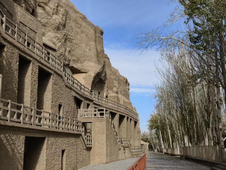 行走莫高窟,九層樓巍然挺立。若非留意,很難關(guān)注到由細(xì)小礫石筑成的洞窟外立面。它與環(huán)境渾然一體,摸上去有些粗礪。這項(xiàng)半個多世紀(jì)前的工程,讓莫高窟告別了坍塌的風(fēng)險(xiǎn)。