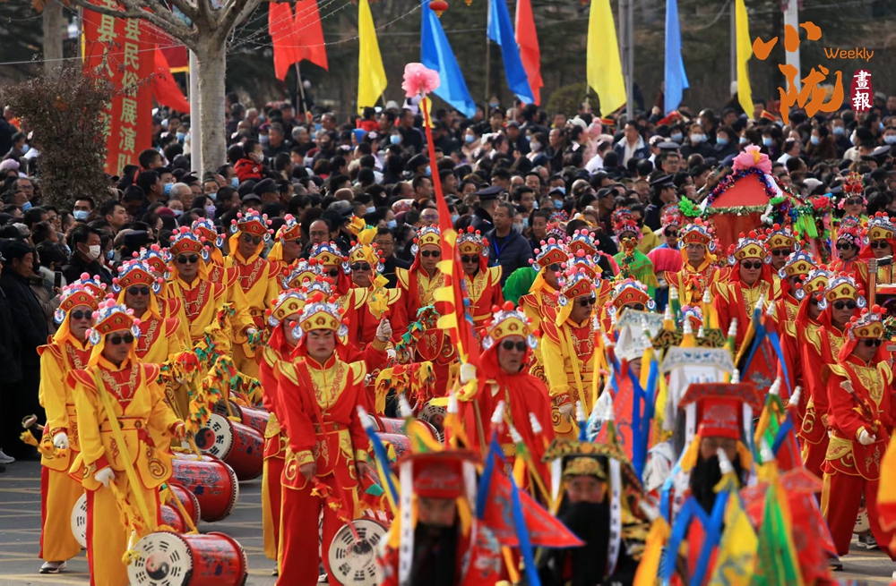 鑼鼓鏗鏘震耳,社火隊(duì)伍最精彩的“八仙”穿紅著綠,飄飄搖搖地過來了。鐵拐李晃著葫蘆,何仙姑輕搖荷花,呂洞賓拂塵一甩,那眉眼間的神氣,活脫脫從畫上走下來的。人群潮水般涌動(dòng)著,爭(zhēng)相一睹這熱鬧光景。