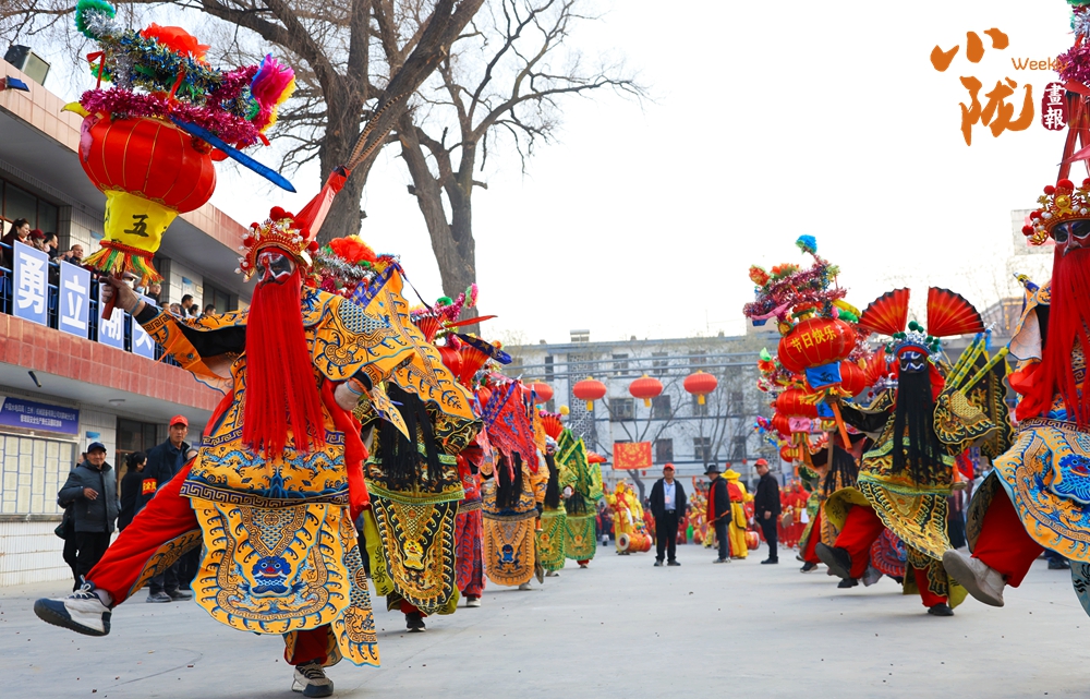 社火陣中,太傅掌燈頭戴鳳翅天冠,雉翎直指蒼穹;身披五彩硬靠,令旗獵獵生風(fēng)。他們是戲文里走出的忠勇虎將——秦瓊的忠義,敬德的威嚴(yán),皆由臉譜勾出千年魂魄,長(zhǎng)髯飄灑間,凜凜威風(fēng)撲面而來。
