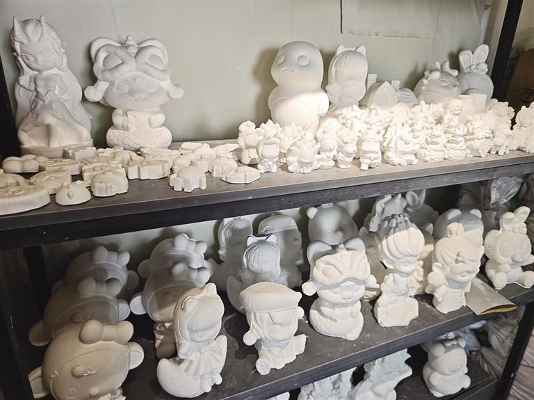 價(jià)格方面,店內(nèi)走親民路線(xiàn)。石膏彩繪體驗(yàn)分為三個(gè)檔位,對(duì)應(yīng)不同大小的白坯模型。面對(duì)在款式間猶豫的顧客,工作人員耐心介紹:“小的是9.9元,稍微大一點(diǎn)的19.9元,再大一些的29.9元。趕時(shí)間的話(huà),選小一點(diǎn)的,完成得快,也不耽誤后續(xù)安排。”
